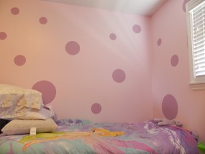 Dad had just finished painting the girls’ room pink with purple polka dots, a process he took so seriously and performed so exactingly that he had difficulty allowing anyone else to pick up a brush. His scrutiny of these walls was already intense, which enabled him to notice P’s dried slime and, if not put two and two together, at least have an Oprah-style (albeit lesser) aha moment when he finally witnessed the crime.