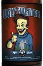 As my dad said when we opened the specialty bomber, “These guys really know their stuff.” Indeed, two of Parallel 49’s brewers have chemical engineering degrees, a better use for which than brewing beer I cannot imagine. BLACK CHRISTMAS is brewed with fresh 100 Mile hops, whose forwardness have the potential to dominate excessively—BUT Parallel 49 pulls it off. Stopping just short of in-your-face hoppiness, they’ve crafted a viscous, chewy, strong beer, blackened by toasted wheat and wafting subtle Christmas aromas such as raisins and pine. Once again, the key is subtlety. The hops may be strong but not to an ass-kicking point, their bitterness being mitigated by some nuanced tasting notes that make you go mmmm. Pound this stuff in quantity and it’ll flatten you with its 6.9 alcohol percentage. But you wouldn’t pound it, because it’s pretty thick. Well, I would pound it. But only because I knew we had UGLY SWEATER waiting in the fridge.