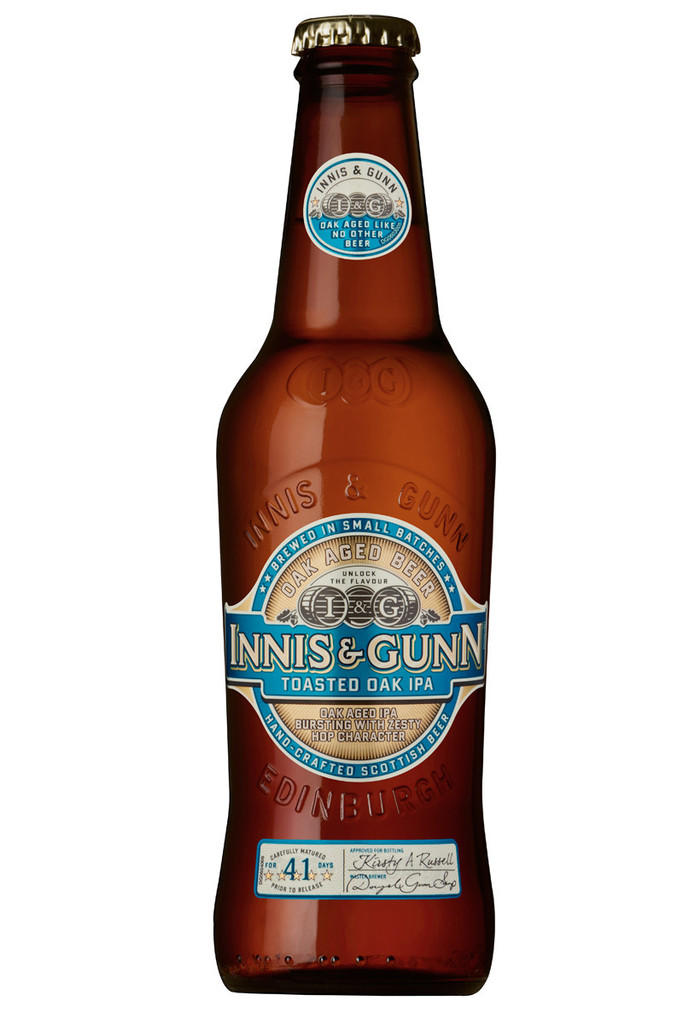 Usually my dad and I get to bogart all the India Pale Ale that enters LBHQ. My mother’s marshmallow tastebuds can’t tolerate IPA’s “earwax and elastic band” topnotes and she has no comprehension of how symphonic a good IPA can be. So when my dad brought home INNIS & GUNN TOASTED OAK IPA, I thought we’d be safe from sharing with her. Together we could drink in peace and scratch ourselves as much as we liked.