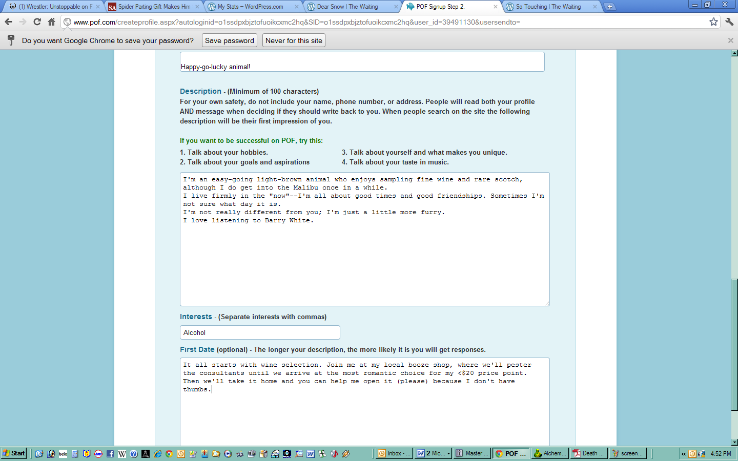 Wow! Pretty spot-on! I think this might be a good thing. Maybe I will make a connection in time for Valentine’s Day after all!