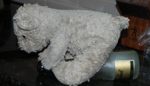 You should see the stuff my mother cooks. You’d count me fortunate to be a bear and therefore banned from the dinner table. Broccoli, corn chowder, zucchini, stew—you’d wish you could have some astronaut pellets instead, or even some rabbit pellets. Nobody at LBHQ needs to worry about pushing away from a table laden with delicious foods. Mum’s got that covered without even trying.