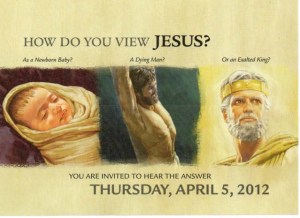 I was also distracted by Music That Pleases God. According to the flyer, God really likes music, which makes sense because He invented it. But is there such a thing as Music That Displeases God? You gotta know it, my fellow inebriates. “Pagan fertility rites, the doctrine of the immortality of the human soul, and the veneration of Mary as ‘mother of God’” are themes that dishonor God. Suffice to say When I find myself in times of trouble/Mother Mary comes to me (whether “Mother Mary” actually refers to Jesus’s mum or not) does not warble out of any JW speakers.