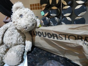 I hope you’ll forgive me, my fellow inebriates—I was a bit angry. I didn’t realize the family was leaving until the last minute—not in time to stow away. I felt lonely and sad. So I decided to recruit Glen Bear to help me smash some bottles open and start our own party.